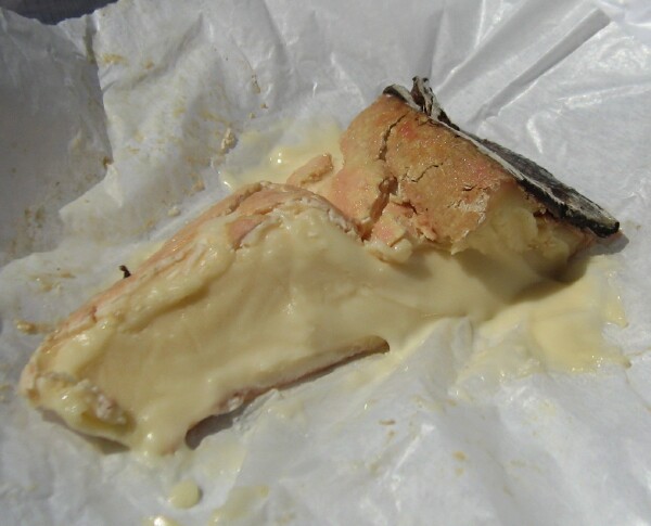 Which . . . oh my sweet cheese Jesus does it look good. A creamy, oozy, gooey washed-rind raw-milk cheese described as similar to a French Mont d’Or or a Swiss Vacherin, it’s made in Vermont from the winter milk of Ayshire cows–winter milk because the fat content is 20 percent higher then–wrapped in spruce bark, washed twice a week with a brine of homebrewed lambic and salt, and aged 60 days. The cheese and the beer create an endless loop of fermentation beauty, with the microbes from the cellar fermenting the brew and the sugars in the beer drawing all sorts of molds and yeasts into the heart of the cheese.